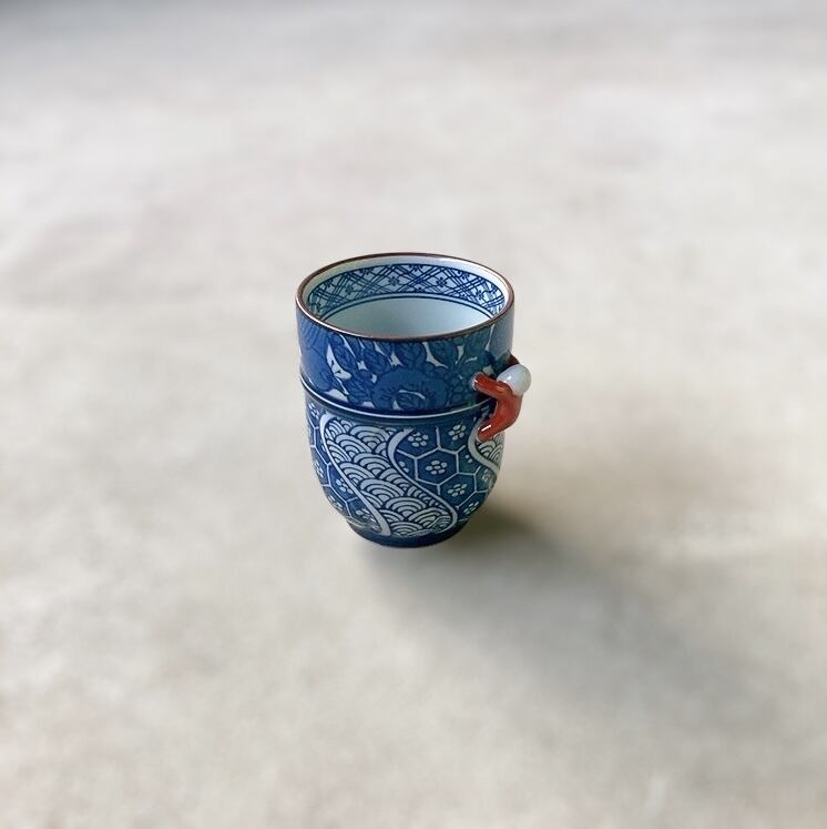 【波佐見焼】花鳥一閑人(赤)彫コップ小 1個