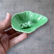 ヒワ釉カエルお香立&ヒワ釉3ツ足台皿 1個